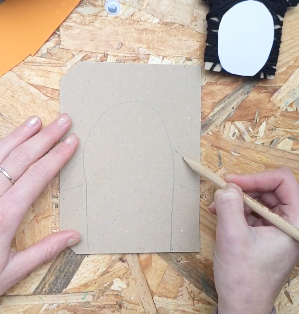 Pour commencer, dessiner une forme de pingouin sur un morceau de carton