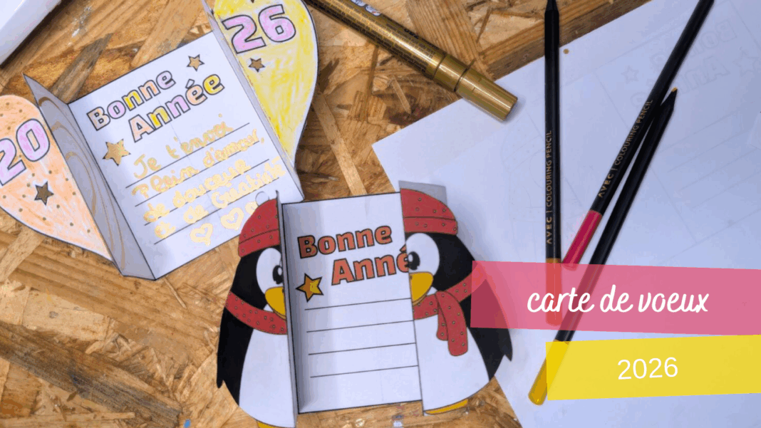 Hello ! aujourd’hui je te propose des cartes de voeux 2026 Pop up à imprimer gratuitement et à colorier si tu le souhaites !