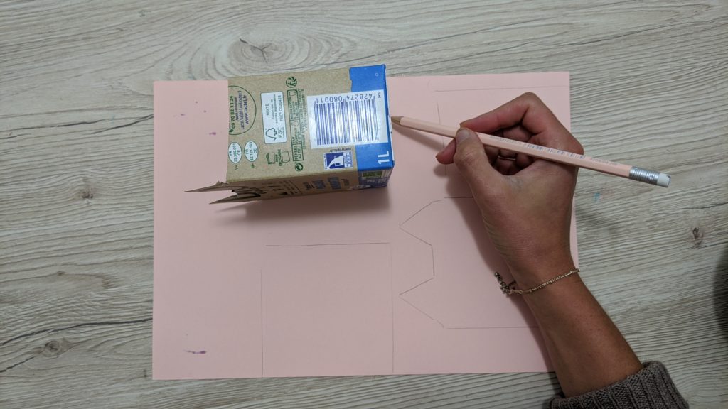 Ensuite, décalquer la forme de chacune des faces du pot à crayons sur une feuille de la couleur de ton choix.