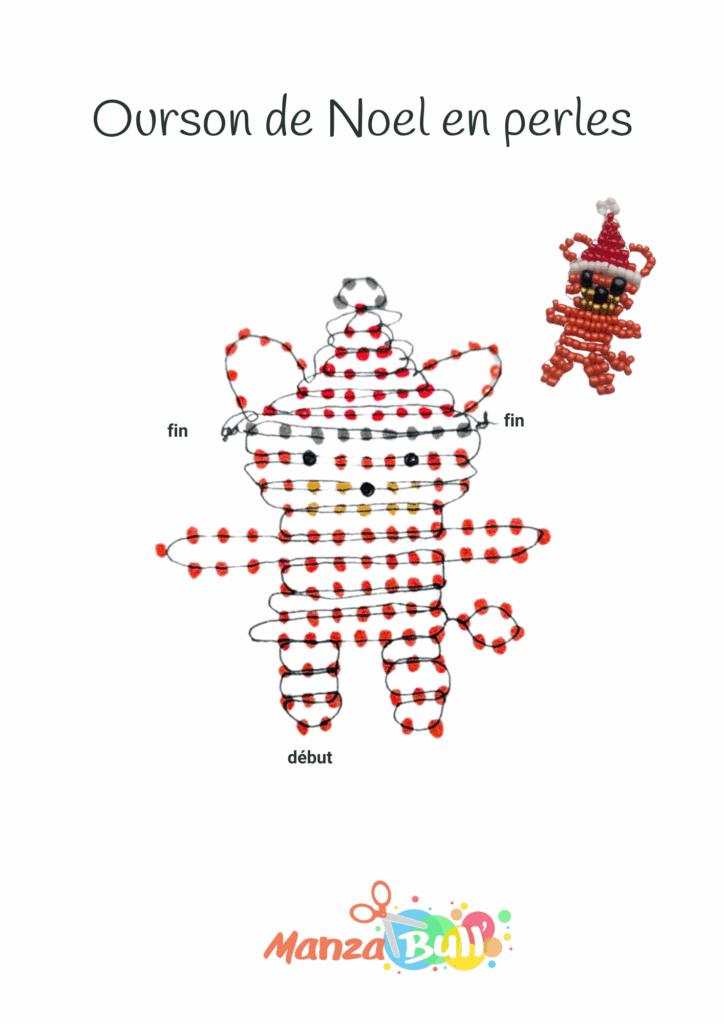 Le schéma ourson de Noël en perles :