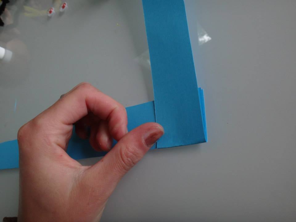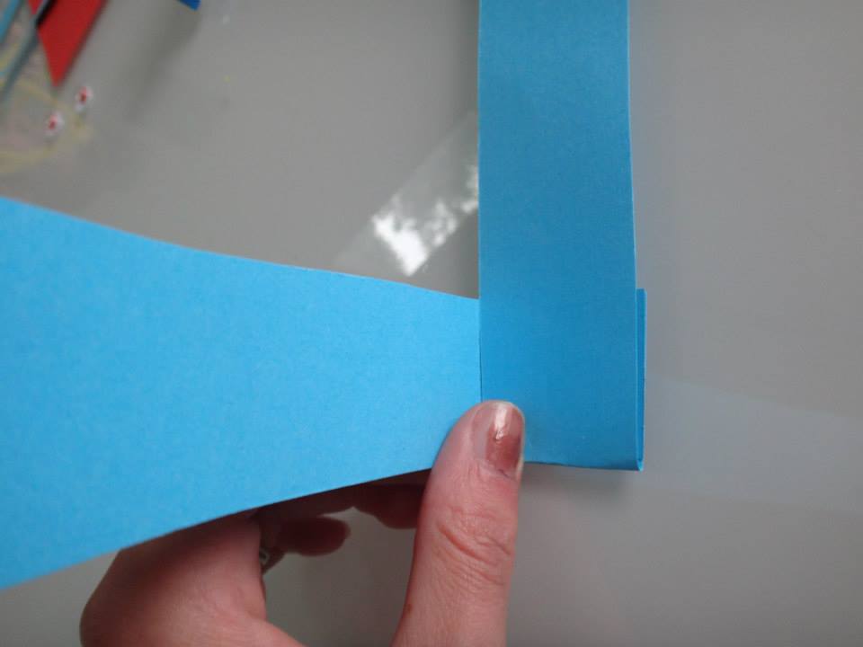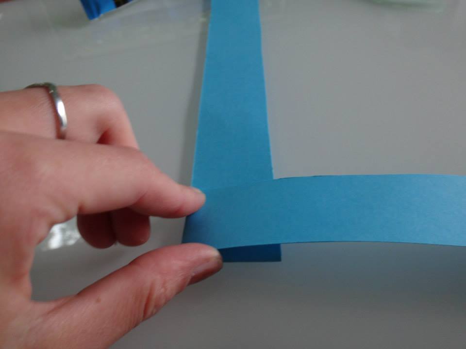 Poses tes 2 bandes de papier en équerre, il faut que les deux coins soit superposés